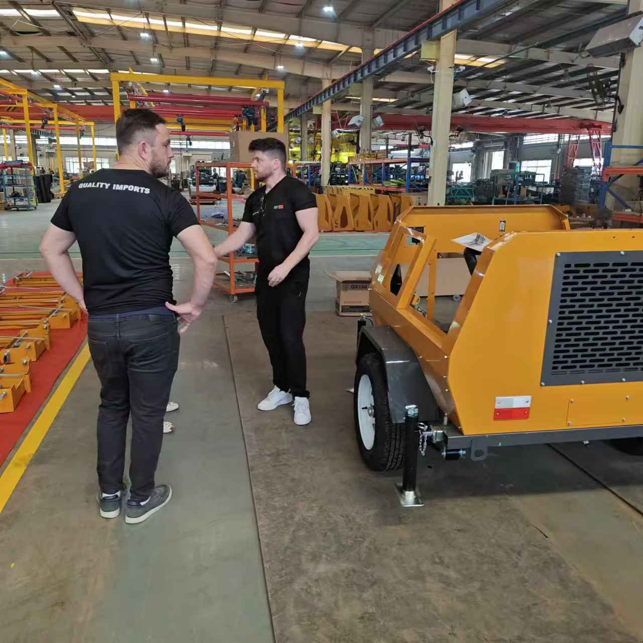 某國外客戶來我廠參觀考察,在工作人員的陪同下,參觀了生產(chǎn)車間與產(chǎn)品展廳,對我廠生產(chǎn)的小型壓路機、移動照明車、平板夯等產(chǎn)品贊不絕口,詳細向業(yè)務人員了解各個型號的配置與參數(shù),達成合作意向