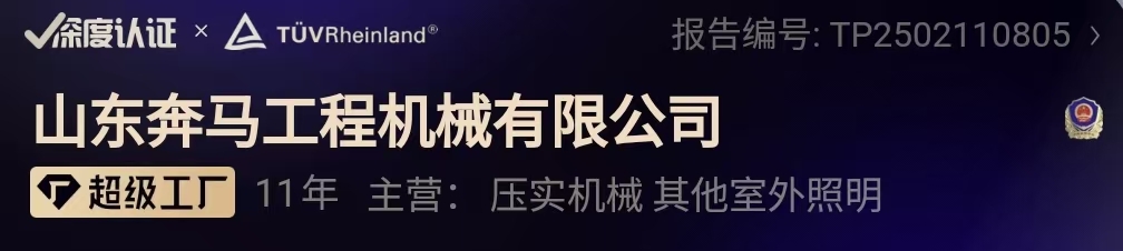 山東奔馬憑借卓越的生產(chǎn)實力和優(yōu)質(zhì)的產(chǎn)品,榮獲阿里深度認證的“超級工廠”稱號,同時被百度認證為“實力工廠”,充分彰顯了其在行業(yè)中的領(lǐng)先地位。公司專注于研發(fā)與生產(chǎn)小型壓路機、移動照明車、液壓動力站等設(shè)備,以創(chuàng)新技術(shù)和精湛工藝為客戶提供高效、可靠的解決方案。我們誠摯邀請各界朋友蒞臨工廠參觀考察,親身體驗我們的生產(chǎn)流程與產(chǎn)品性能。山東奔馬將以專業(yè)的態(tài)度和優(yōu)質(zhì)的服務(wù),與您攜手共創(chuàng)美好未來!歡迎隨時聯(lián)系,期待與您合作!全國免費服務(wù)電話:400-6537-859